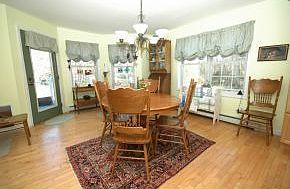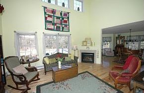 Listing agent: Debbi Burton, Call 802-655-9229 for information. A covered front porch shelters you from the elements – step inside the front door and you’ll find yourself in a sunny two story front hallway which leads into the main living area. A two story living room opens to the country dining area and the kitchen, so this is a home designed for casual, relaxed living. Originally carpeted, the living room features new yellow birch hardwood floors and a wall of windows facing the backyard. There’s a gas fireplace placed on an angled wall between the living room and the dining area which has an angled bay of windows overlooking the yard and a door to the deck. The kitchen is anchored by a center island, and features hardwood cabinets, laminate counters, and a walk-in pantry. Maple hardwood floors run from the front door through the hallway, kitchen and dining room. A laundry/mudroom off the hall has a sink for cleaning up after projects, and the room leads to the two-car garage. At the far end of the main hallway you’ll find a half bath for guests with a tiled floor and pedestal sink and a linen closet. The first floor master suite also features maple hardwood floors and three windows fill the room with light. The adjoining master bath has a corner shower, double vanities, and a corner soaking tub. The walk-in closet for the master bedroom is just inside the bath door. The stairway to the second floor has hardwood treads and an upper hallway runs between the two story foyer and living room with a dramatic view to the rooms below. The loft is used as a library/office, and there are two bedrooms, a full bath and a second linen closet. The entire second floor is carpeted. The lower level of the house has a finished family room and another room which is partially finished, so there’s lots of room to relax and room for storage as well. There are ceiling fans in the living room, master bedroom, and the loft, and a whole house attic fan cools the house on hot summer evenings. The owner has an under ground system directing rainwater from the roof to a rock-rimmed pond in the yard. And if you enjoy picking berries in the summer, Nye’s strawberry farm is located nearby in Georgia; you could pick a quart on the way home from work!