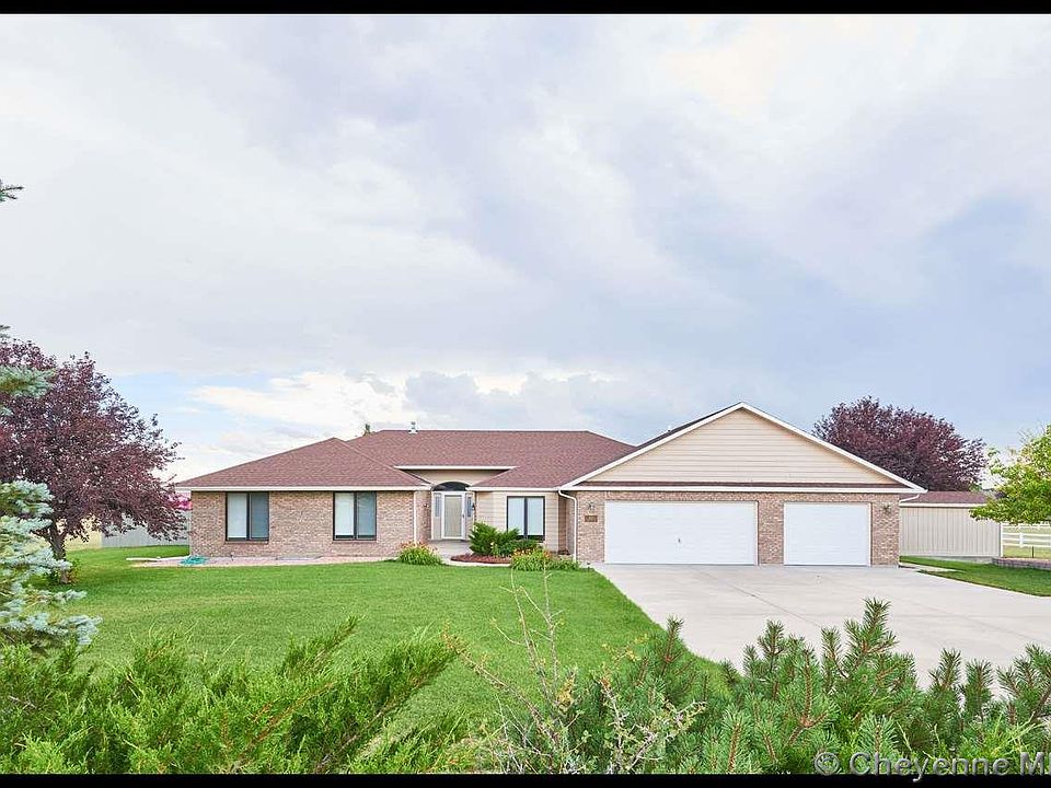 Capture the spirit of Wyoming with this beautiful ranch home. Abundant relaxation very close-in rural, in Murray Hill Estates on 3.54 acres. Nearly 4,140 square feet of finished luxury to enjoy your solitude. This 6 bedroom, 3 bath home includes a new roof, an attached 3 car garage, enclosed sun porch, A/C, main floor laundry, large gourmet kitchen, formal living and dining room. Attached family room features a gas-fueled fireplace and great natural light, and a second family room with second gas fireplace. Six foot cedar fenced back yard plus three-rail fencing around entire property. Brand new 22'x32' insulated and heated hobby shop with two roll-up doors. Mature professional landscaping with in-ground irrigation.