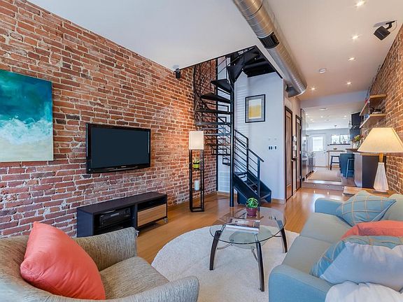 Modern, luxury, green, custom 3-story townhouse with private roof deck, full renovation (not a condo/apt), spiral stairs, 2 bedrooms, 1.5 bathrooms, open 3rd floor sun-lit atrium loft great for home office or yoga, with wet bar; the back has parking and a remote operated scrolling gate. $5600 per month (includes water, sewer, trash, recycling), one year lease and one month's deposit. Nestled one block from all the fun (music, food, wine, theaters, yoga, etc.), 1 block from the Metro, 2 blocks from Whole Foods, 4 blocks from the high-end restaurant scene on 14th Street, 5 blocks from Trader Joes. Approximate square footage: 1400 square feet interior, 170 square feet private exterior roof deck, 150 square feet front yard, 400 square feet exterior back yard patio and offstreet parking Please note that this is two bedrooms only. No pets. No smoking. Exposed duct work, original brick walls, 9 foot ceilings Chef's professional stainless steel kitchen: Wolf dual fuel range, Miele refrigerator and dishwasher, Bosch built-in microwave Custom spiral stair Open-air third floor can be used for home office, yoga studio and indoor gardening Wired ethernet and speakers: built in Bose outdoor speakers on the roof deck, Klipsch surround sound in the living room, Polk Audio in the kitchen and third floor loft Private roof deck perfect for entertaining, people watching and flower gardening Wet bar just inside roof deck Backyard garden patio Front yard garden plus flower tree box Remote operated industrial scroll gate for off-street backyard parking Recessed LED lighting Front loading high efficiency washer and dryer Tankless high efficiency Rinnai hot water heater Recycled glass countertops Bamboo floors, custom cabinetry and interior doors (with integrated chalkboards on first floor and full length mirror in bathroom) Low VOC woodwork and paint Trane high-end, high efficiency heat and AC system High efficiency Pella architectural grade windows Third floor loft atrium includes electric skylights and retracting ceiling fans. Per DC 42 2851.06, "...the housing provider will not refuse to rent a rental unit to a person because the person will provide the rental payment, in whole or in part, through a voucher for rental housing assistance provided by the District or federal government." Rental History: Each applicant may demonstrate a history of meeting prior lease or mortgage obligations and leaving any prior rented properties in good order. Significant adverse rental history may disqualify an applicant. Income History: Applicants to verify household net income of at least 3.5x the monthly rent amount, and liquid assets 4x monthly rent. Employment verification required. Credit History: An applicant may be declined if their credit history indicates high risk. Criminal History: A criminal background check is needed of all applicants. Owner pays water, sewer, trash and recycling. No pets. No smoking.