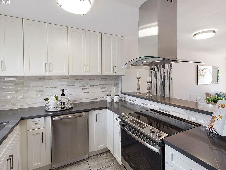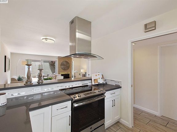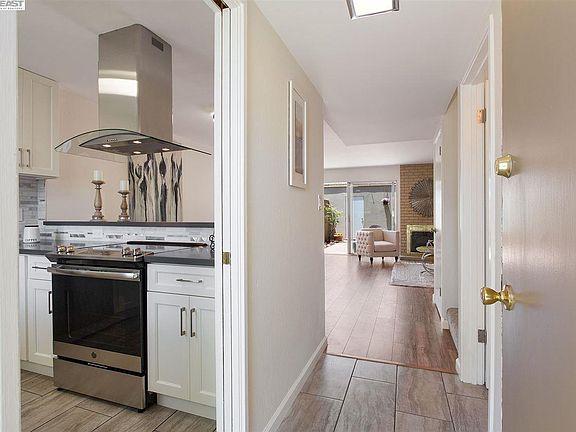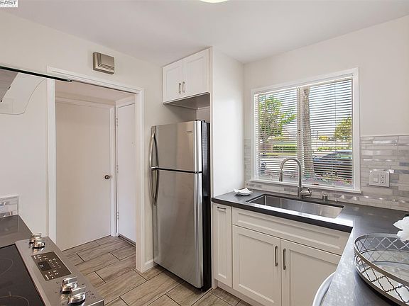 Stylish Casitas "C" model with an open floor plan. Updated kitchen with quartz counters, tile back splash, white cabinets, tile floor and stainless steel appliances. Laminate wood floors in the dining and living room areas. Plush upstairs carpets. Indoor laundry with washer and dryer. Updated half bath with quartz counter top, tile floor and designer light fixture. Spacious master bedroom with a walk-in closet. Updated upstairs bath with newer shower enclosure, tile floors, quartz counter and designer light fixture. Fresh interior paint. Lovely landscaped private patio. Two car garage with storage shelves. Located close to SF ferry, transportation, park, shopping center, pool, clubhouse, guest and off street parking. Open Sunday 7/1 from 2 to 4 pm.