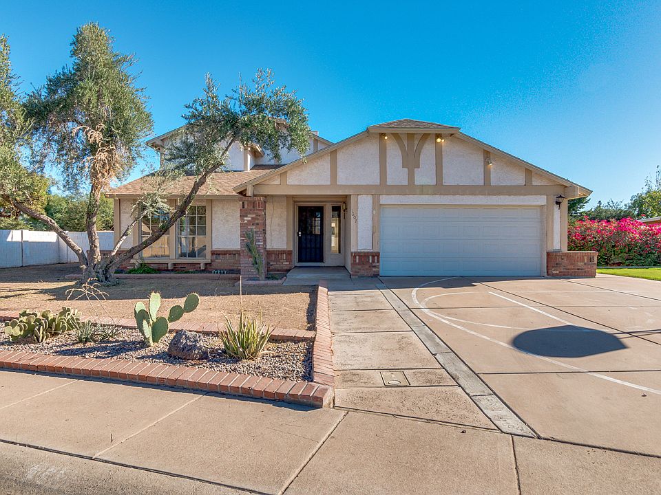 Splash in the pool at this two-level Chandler home! Step inside and take note of the vaulted ceilings and ample living spaces. The eat-in kitchen features granite countertops and direct access to the covered patio. The Master suite boasts a spacious walk-in closet and an ensuite bathroom with dual sinks and a beautiful step-in shower. Easy access to a Fry's, a gym, and casual dining options!