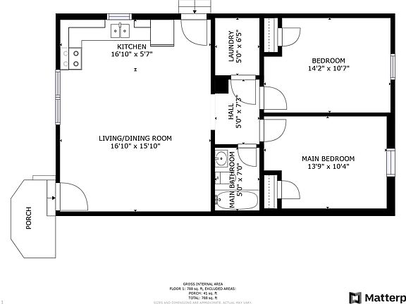 - Total interior livable area: 800 sqft