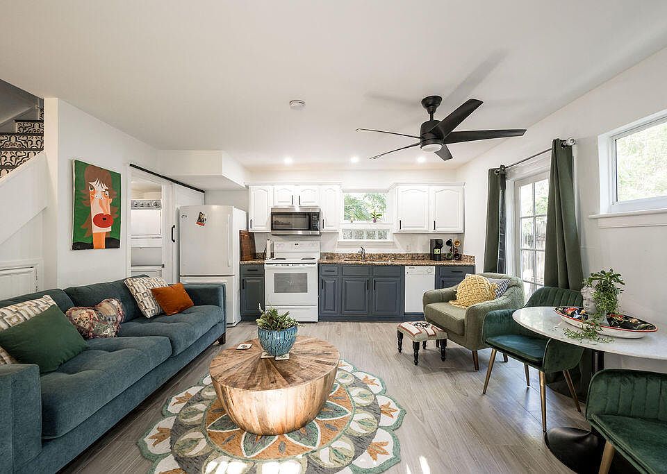 NEW LISTING! Beautiful two-story home, this Tropical Tree House is situated in the heart of Old Town. This home provides both privacy and tranquility. Nestled back from the street, it is enveloped by lush tropical surroundings and a privacy fence. Experience the best of indoor and outdoor living in this charming abode with patio for dining and relaxing, outdoor shower, and large covered balcony from the second floor with tree top views of paradise. Home features two newly renovated bathrooms, indoor laundry, new flooring, and more! Main level is light filled and opens to the patio area with room for grilling and entertaining. Upper level boasts a spacious primary bedroom with extra high wood beamed ceilings, renovated full bath, generously sized closet, storage, and private balcony space. Ductless Central AC. This is a rare find in Old Town, private and detached property with no condo or HOA fees! Perfect for pets with the fenced yard. Plenty of room to add a hot tub and ample storage space in the shed. Close to Duval Street, dining, shopping, and galleries. Desired X Flood Zone!