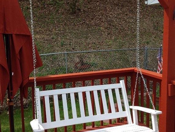 Private back, fenced yard, jungle gym stays. Finished basement has 2 bedroom, bonus room, 28x10 storage room, wet bar, refrigerator, 1 full bath in basement. Upstairs has 2 bedroom, 2 bath, large kitchen. Back deck & swing. Washer/dryer hook-up both floors. Private neighborhood, dead-end road. Prewired for computer network. Automatic electric comes on runs whole house off generator. Seller will remove jungle gym.