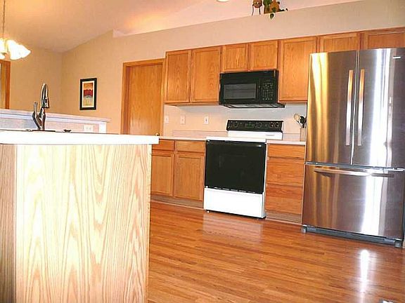 Move in ready, spacious 4 bedroom, 3 bath, open split bedroom plan ranch in Wilderness Estates. Main level features kitchen that is open to living & dining areas with breakfast bar, pantry & new laminate flooring throughout (includes all appliances too!), vaulted great room with decor ledges & new carpet, master suite with walk-in closet and bath with double bowl vanity, a spacious 4-seasons room with vaulted ceiling is off dining area with slider to deck that overlooks parklike fenced yard that includes irrigation system and loads of landscaping, laundry area is off garage and washer/dryer stay. Lower level finished basement with large main living area, full bath jacuzzi tub and shower, and 4th bedroom . Neighborhood park is very close too! This home is neutral, is clean and ready to go! Don't miss.