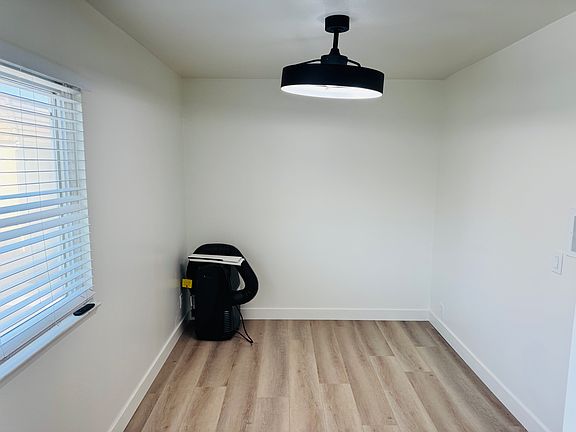 Don't miss this beautifully remodeled upstairs studio located in the serene and well-maintained Chateau Blanc community of Fountain Valley. This bright and private unit offers comfort, style, and convenience all in one. Inside, you'll find brand-new vinyl plank flooring, a functional kitchenette with a new microwave, portable hot plate, and refrigerator, plus generous cabinet storage. The bedroom has been thoughtfully closed off for privacy and features a fully renovated en-suite bathroom with a new shower, modern vanity, toilet, and matching mirrors and medicine cabinets. Stylish upgrades include faux wood blinds and a modern ceiling fan with color-changing LED lighting. The private entry has also been updated with freshly painted stairs, new stair lighting, and a privacy panel offering a secure and welcoming arrival experience. All utilities are included in the rent, along with an overnight parking permit just across the street. As a resident of Chateau Blanc, you'll also enjoy access to HOA amenities including a sparkling swimming pool, tennis courts, lush green belts, and more all maintained for your enjoyment. This rare studio is move-in ready and perfectly located schedule a tour today! One year term minimum. Only 1 resident allowed. Water, power, trash, and gas Is included in the rent. No pets allowed, no exceptions. studio is an upstairs unit above the garage which will only be used for access to and from the studio unit. No smoking of any substances in or on the property. Parking in the community is allowed during the day time, overnight permitted parking will be included with the rent across the street.