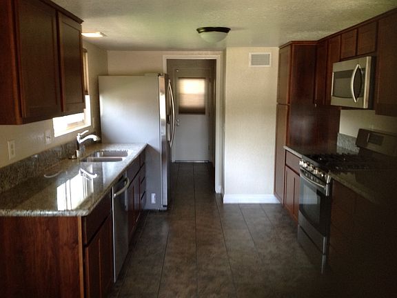 Beautiful home with new ceramic tile floors, granite counter tops, stainless steel appliances, inside laundry room, ceiling fans throughout, great backyard for entertaining, wrought iron gates. Come to the open house, ask questions, fill out and submit an application at no cost to you. Owner pays gardener, trash, and water. Can sign one year lease or month to month