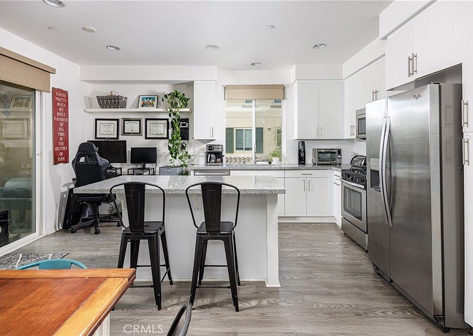 This beautiful and well maintained carriage style condo is truly a rare find. The spacious great room accommodates a large kitchen, a study/home office nook, full dining area and comfortable living space. The white and bright kitchen features quartz counter tops, bar seating at the island, and stainless-steel appliances, including a newer dishwasher. The study/home office nook is adjacent to the kitchen and leads out the sliding glass door to the private south facing balcony. Here you can make the most of the SoCal living by enjoying both sunrises and sunsets and dining al fresco. Upstairs there are two suites, each featuring a private bathroom. The primary suite has a spacious walk-in closet, dual sink vanity and water closet. The secondary suite's bathroom has a tub-in-shower. Laundry is no longer a chore with a full laundry room located upstairs. Solana Walk is a highly sought after gated community and was built in 2013. It features resort style amenities - pool, cabanas, covered outdoor kitchen, dining area, and large outdoor fireplace. Parking is no problem with the two-car attached garage and abundant guest parking spots. It is ideally located close to shops, restaurants, entertainment and famous Huntington Beach sand and waves. Conveniently adjacent to the 405-freeway making for easy commuting all over Orange County.