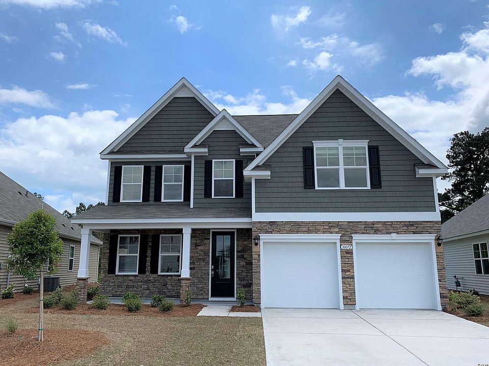 Our Forrester plan is a well appointed two-story home with a picturesque front porch, formal dining area, and a huge kitchen island! The kitchen features white painted cabinetry, granite countertops, and stainless Whirlpool appliances including a gas range. A bedroom and full bath on the first floor are perfect for guests visiting you at the beach while the grand primary bedroom suite, two additional bedrooms, the laundry room, and a large bonus room over the garage are upstairs. This home will also feature a rear screen porch overlooking a spacious back yard in our brand new natural gas community in Carolina Forest! The Parks of Carolina Forest is a picturesque setting of ponds, an amazing amenity center, and park of the majestic "Ten Oaks" with a walking trail to get to the Carolina Forest library. *Photos are of a similar Forrester home. (Home and community information, including pricing, included features, terms, availability and amenities, are subject to change prior to sale at any time without notice or obligation. Square footages are approximate. Pictures, photographs, colors, features, and sizes are for illustration purposes only and will vary from the homes as built. Equal housing opportunity builder.)
