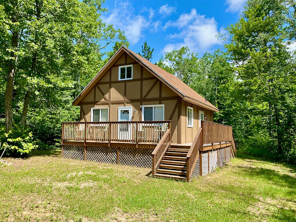 Great up north get away with this 3 bed/1 bath Chalet. Home features an updated kitchen, open concept, with a breakfast bar. Full basement with a woodstove waiting for your finishing touch. Exterior features porch on two sides of home. Lakes of the North amenities include restaurant, deeded access to 2 lakes (Harold & Pencil), golf course, campground, snowmobile trails near by, clubhouse, airport, pool, tennis courts.