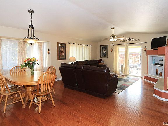 Ranch style home in Foxton Village with 2 car garage 3 bedrooms 2 baths with a Large open kitchen with eating space and lots of cub boards, separate dining room and family room with gas fire place. Fully fenced back yard with sprinkler system and small patio. Master bathroom just remodeled, great neighborhood close to I70 and shopping there is a Vivid Solar system buyer will need to take over lease please call agent for details.