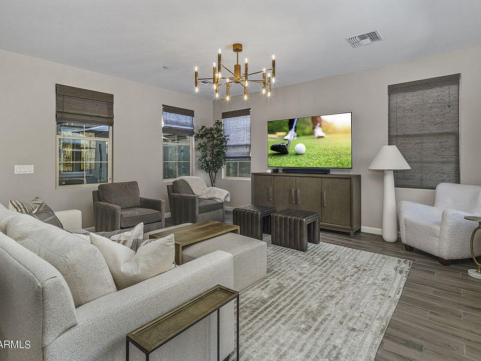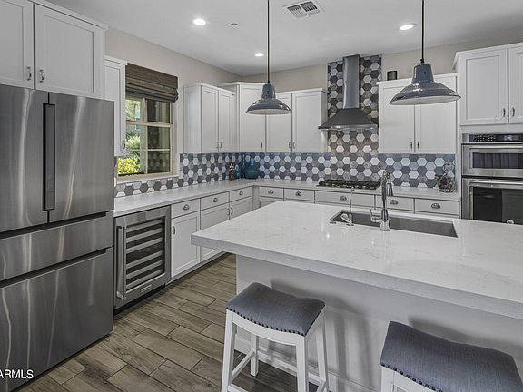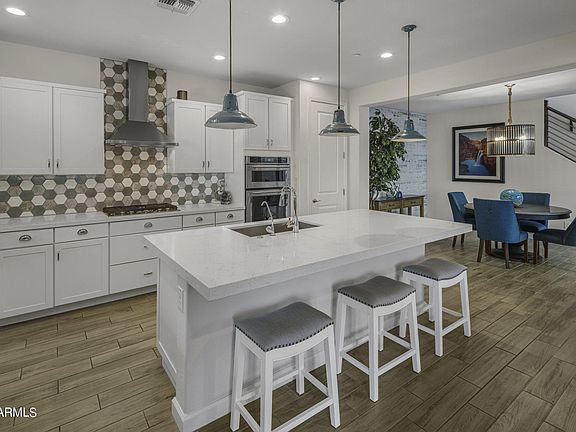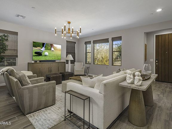 Spacious Upgraded Contemporary Villa located in a gated enclave with incredible views of the McDowell Mountains! This popular open floor plan has upscale designer finishes-a chef's kitchen with Quartz countertops, Tabarka Tile backsplash, SS appliances (New refrigerator & disposal), 5-burner gas cooktop, and wine fridge. The First floor Primary Bedroom has a large walk-in shower, and walk-in closet. The 2nd floor has an Airy Loft TV/Media Room with built-in workspace and balcony offering awesome mountain views. Two large guest rooms and full bath upstairs provide privacy for family and guests. GREAT LOCATION near World-Class Shopping, Restaurants, Entertainment, Golf Courses, West World, Ice Den, with proximity to Scottsdale's Major National Events -Barrett Jackson, TPC Waste Management Tour, the Arabian Horse Show--Easy access to Airports! New water heater, new roof and new exterior paint. Don't miss this opportunity to call this home your own!!