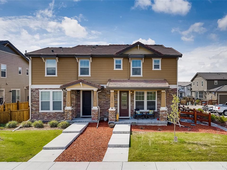 Stunning home with meticulous attention to detail in sought after Meridian Village. Situated on a beautifully landscaped corner lot, close to shopping and I-25. Spend summer nights relaxing on your covered front porch or redwood deck! Prepare meals in your gorgeous gourmet kitchen with custom (soft closing) cabinetry and drawers, modern backsplash, satin nickel hardware, and pantry. SS appliances include a gas cooktop, convection microwave, dual oven, and refrigerator. The island features usb plug-ins, pendant lighting, hot water spout, and built-in for 2 waste baskets. You'll appreciate custom features such as 9' ceilings, stunning 8' glass front door, canned lighting throughout, a large master bedroom with bonus sitting nook and walk-in closet, floor to ceiling tile fireplace and surround sound in living room, spacious loft with hardwood floors, plush high-end carpet, custom blinds, upstairs laundry, and pre plumbing in full unfinished basement. Nothing left to do except move in!
