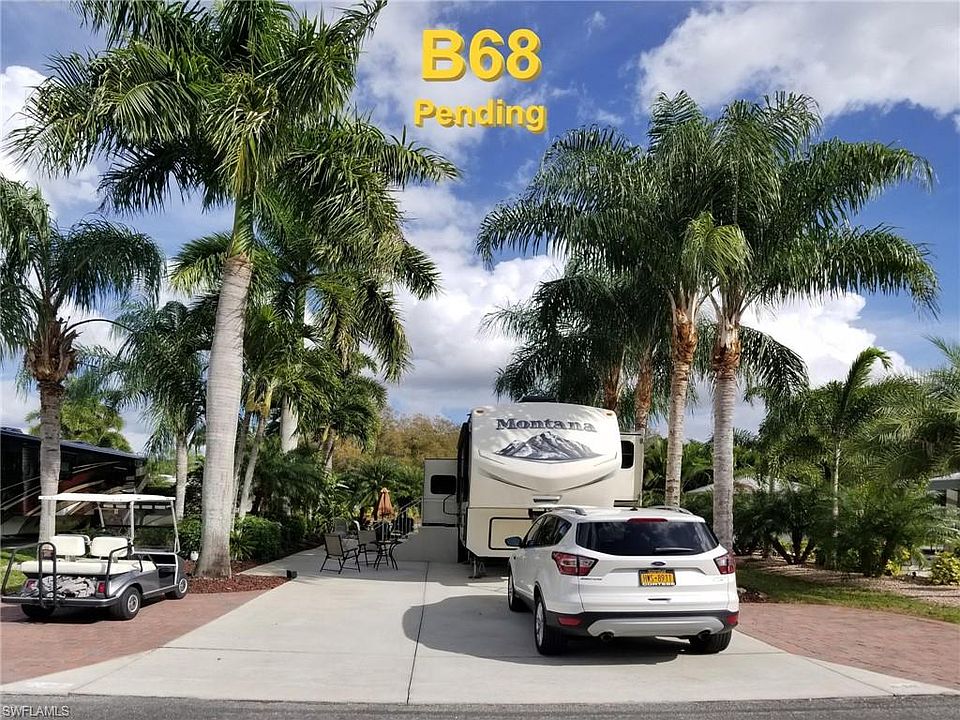 B68 This back-in RV lot is perfect for a 5th wheel or motorhome. You'll love the convenience of being located close to the Town Center and ball courts.The enclosed accessory structure includes a full-size washer and dryer, refrigerator, plenty of cabinets, sink, shower, and commode. A perfect blend of landscaping, providing privacy and a wonderful tropical atmosphere. Cypress Woods RV Resort is a 5-star luxury resort. Amenities are plentiful including 2 heated pools and hot tubs. The elegant Town Center has a large great room with dance floor and stage plus a catering kitchen to accommodate the numerous social events. There are community & card rooms and daily activities throughout the resort. Other amenities include tennis, pickleball & shuffleboard with lighted courts, bocce ball, water aerobics, a day spa & 24-hour gym. Included in the maintenance fee are water, sewer, cable tv & lawn mowing PLUS maintenance of all the resort's amenities, roads and common areas. Call today to see this RV lot and special resort!