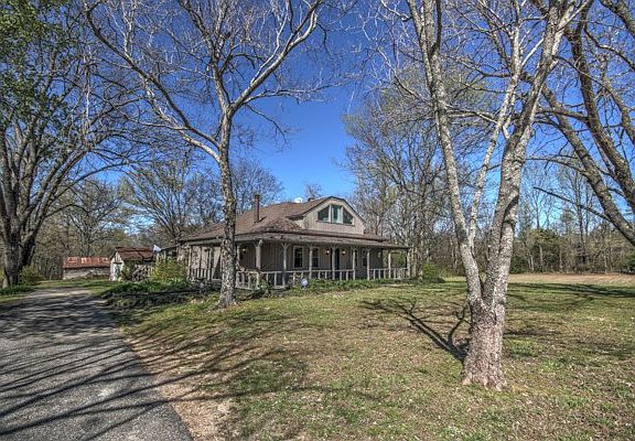 WOW! Fabulous Farm House w/9.4ft Ceilings on 2 Acres w/ "Wrap-around" Porch & Deck, and Side Friend's Entrance! Check out NEW Lifetime Warranty Windows (17k), New 30-yr Architectural Roof, Electrical updates (Approx.2007), 3Br/2Ba & Bonus Rm up,Brick Floored Den, Master Suite w/Vintage Firepl & Custom Walk-in Closet w/Built-ins,Office/Nursery,French Doors leading to Back Deck, Mudrm/LaundryRm on Side, 2-Car Detached Gar w/side door and leading to back deck, Vintage Barn and Tree Fort!