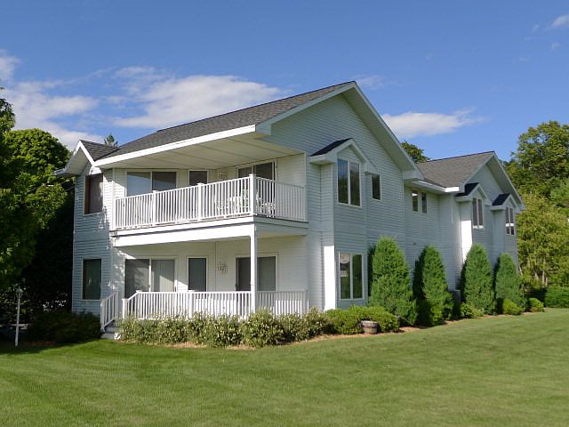 Well-located, spacious, and with views of Eagle Harbor and the Ephraim Yacht Clubs marina, this three bedroom, two bath first floor unit features windows on all four sides, offering a light, bright space. The unique layout features angled walls, bay windows with bench seats, a huge, gorgeous fieldstone fireplace, spacious deck and more. Theres also a spacious master suite with private bath and walk-in closet. One of the two guest bedrooms has been outfitted as an office with built-ins. All this an easy walk to all village sites and activities. The association has a lovely pool area and shares access to a private sand beach. Live where you play in scenic Ephraim!