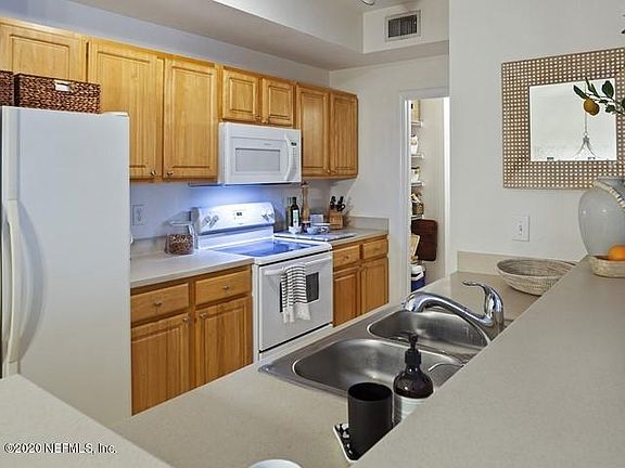 Carefree Florida lifestyle in a prime location! Walk/bike to nearby St. Johns Town Center NE FL Region's prime open air mall w/upscale shops & restaurants, Tinseltown movie theater, Costco & many nearby businesses like Fidelity, B of A, BC/BS, Merrill Lynch, etc. all in the Gate Pkwy/Deerwood Area of Southside. Just mins to sandy BEACHES. This 2BR/2BA condo is located in popular, gated Mirabella. It offers the privacy of a split floor plan & two spacious bedrooms with private full baths & walk-in closets. Screened patio, built-in desk, new HVAC, & paint 2 yrs ago. Large pantry area w/laundry room & washer/dryer. Water/sewer included. Resort style amenities include POOL with spa, well-equipped fitness center, clubhouse includes kitchen & office. SMOKING PROHIBITED. NO PETS.