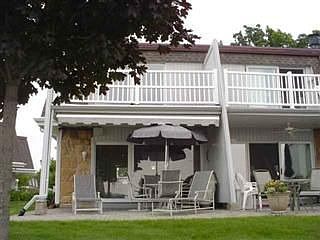 This is and end condo with space to roam right in front of the condo! Two boat spaces and waverunner spots as well. Community pool, pet friendly, updated baths and kitchen. Sunset views. Carport with storage, vinyl siding, pavered patio with electric awning. Great place for family and friends, all sports clean lake!