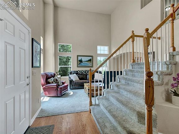 Welcome to your dream home in the coveted Pine Creek neighborhood! Nestled on a spacious 0.32-acre cul-de-sac lot, this stunning residence offers over 3,400 sq ft of luxurious living space. As you enter through the grand entrance with soaring tall ceilings, you are greeted by an inviting open floor plan that seamlessly blends elegance and comfort. This exquisite home features 6 generous bedrooms, main level office and 4 well-appointed bathrooms, providing ample space for family and guests. The expansive master bedroom is a true retreat, offering a serene escape with Beautiful Mountain View’s of Pikes Peak and plenty of room to unwind and relax. The main living areas are beautifully appointed with rich hardwood flooring and fresh, new carpet, creating a perfect balance of style and coziness. The heart of the home includes a spacious kitchen with modern appliances, ideal for preparing meals and entertaining. The three-car garage offers plenty of storage and convenience, while the large backyard provides endless outdoor activities and relaxation possibilities. Located in the highly sought-after District 20 school district, this home offers exceptional educational opportunities. With its prime location, elegant finishes, and spacious layout, this Pine Creek gem is ready to welcome you home.