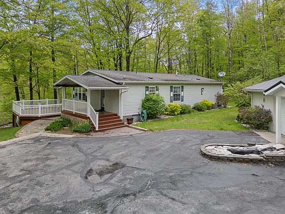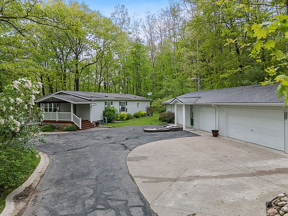 This beautiful private setting on 6.68 acres of hilly wooded terrain has 900 m/l ft frontage on Gilbert Creek features a move-in condition 2 BR, 2 BA manufactured home and a large garage. A comfortable living room with a gas log fireplace and the family room complement the kitchen that has an island, pantry, and a dining area with a slider door to the deck and covered porch. A "Nature Lovers" dream to enjoy water, woods and the wildlife.This beautiful 6.68 acre property consists of hilly wooded terrain with 900 m/l feet of creek frontage with a nice yard to the waters edge. Walking trails throughout the property. A nice private setting on highway M-20 with a paved driveway and landscaped yard. The 1998 manufactured home has a living room w/gas log fireplace, a master suite, a guest bedroom, and a 2nd. bathroom. A comfortable family room with a knotty pine interior complements the living area. The kitchen features an island, pantry, and a dining area with a slider door to the deck. The laundry/entry room has a cabinet sink and closet. The garage is 52 feet x 24 feet with 2 car heated, a 10 x 24 finished heated & air conditioned bunk room and the 20 x 24 garage area with a separate entry side door. Covered porch and large deck area overlooking the creek. Whole house natural gas Generac generator. Storage shed is 10 x 12. Trout fishing and some hunting can be enjoyed on this property. A Nature Lovers dream to enjoy watching the birds and wildlife. Known as the Heart of the Lakes area with several inland lakes and streams to enjoy year round. Throughout the year, the temperature in Mecosta County varies between a low of 12°F and a high of 83°F. The area also experiences an annual precipitation of 37 inches and a snowfall of 59 inches, while the humidity level remains comfortable throughout the summer, providing a pleasant environment for residents and visitors alike. There are four distinct seasons here in Central Michigan. Located near the Tri-Lakes and 13 miles to Big Rapids for shopping, dining, medical facilities and the home of Ferris State university. Mt. Pleasant is 35 miles for shopping, dining, medical facilities and the Soaring Eagle Casino Resort. Grand Rapids is 60 miles away.