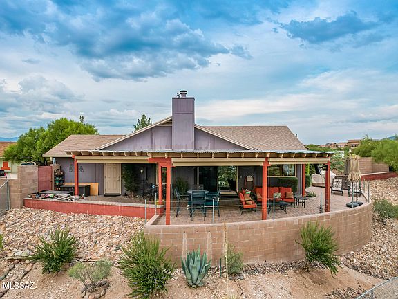 Range priced from $310,000.00-$335,000.00. This home is LIKE NONE OTHER! This two bed, two bath, STAND ALONE home has been completely renovatedwith Million Dollar Views (for a fraction of the price with outdoor living that is just perfect for ourbeautiful Tucson weather that includes 3 patios with sunshades on the large patio to allow for yearround enjoyment and very private. The Primary bedroom has a sitting room, workout room, TV room or make it a nursery.The guest bedroom has a Murphy bed that can be converted to an office desk and a lovely bay window.This home is a must see!!! Custom window coverings throughout the home. The kitchen has an abundanceof counter space with a breakfast bar fit for a king!! Truly, one a kind home nestled in this wonderful community with parks and a community pool with a lovely Ramada for all to enjoy with incredibly low HOA dues. Buyer to verify Square feet. All additions/remodeling was done by a Licensed Contractor. Tax records show 1093 sq ft. Seller says closer to 1225.