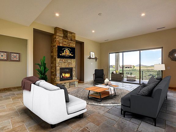 Stunning new construction with all the upgrades imaginable! The home features 2397 square feet, 8 ft doors , and 10 ft ceilings. There is a floor to ceiling stone fireplace in the great room which features great spaces for built-ins as well as wonderful views of the Bradshaw Mountains. The great room is open to the dining area, and kitchen. The kitchen offers outstanding features including leathered granite countertops, a large island, a 36''- 6 burner wolf dual fuel range, a built in microwave, and a large built-in pantry. There is a large eat-in space in the kitchen also. The home features 3 large bedrooms and an office. The master suite features a large walk in closet, walk-in shower and a large jetted tub. There is a covered deck with tongue and groove ceiling that offers spectacular