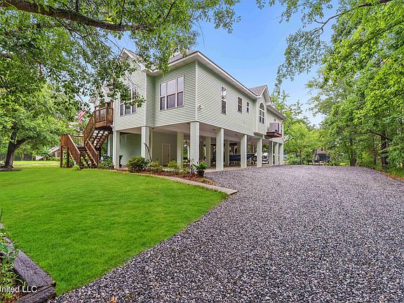 Stunning, stately Southern waterfront home close to Watt's Bayou and easy access to the Jourdan River and big water and over an acre of land! Soaring cathedral ceilings in the Living Room and Main Bedroom. Tons of natural light, split bedroom plan, open kitchen concept, interior stairs plus front and back stairs and porches. Hardwood floors, stainless appliances, cargo lift, storage room and much more. 170+ ft of waterfront and 120+ ft dock and pier! Plenty of outdoor living and green space. Make an appointment to see this stunning home today!