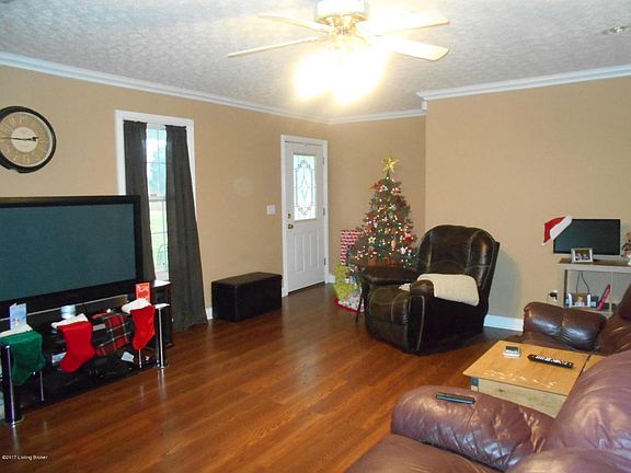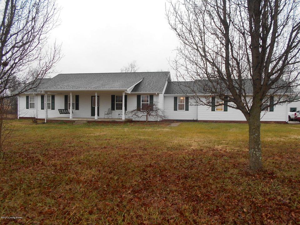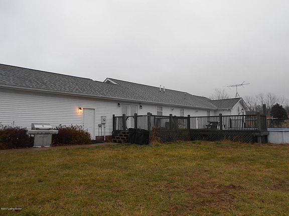 Large vinyl home, 4 bedrooms, 2 baths, oak cabinets, laminate wood floor, carpeted bedrooms, tile bathrooms, 2 walk-in closets, 3 standard, 2 pantries, 2 car attached garage, 24 x 32 detached metal garage, large treated wood deck with 27' round pool, 14 acres, blacktop drive, 10 miles from Leitchfield at Short Creek.