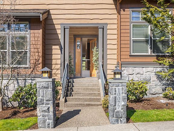 This exquisite townhome, built by Renaissance Homes, will impress you with its stunning remodel and simple living. The entry welcomes you home in style with gorgeous, new hardwood floors and a thoughtful design. This upscale townhouse has three bedrooms and two full bathrooms on the upper floor, plus a fourth bedroom/den option with a full bathroom on the main level. There is plenty of cabinet space, marble herringbone backsplash, and 105 square feet of quartz countertop in the tastefully updated gourmet kitchen. The great room, which has a stunning floor-to-ceiling tile fireplace, is adjacent to the kitchen and is the true heart of the home. Off the dining area you'll find the covered balcony which offers a tranquil haven with inspiring forest views. Expansive, primary retreat with an opulent en-suite bath includes a deep soaking tub, updated tile shower, quartz countertop, tile backsplash, new undermount sinks, and a walk-in closet. The lower-level flex space is perfect for a media room, wine cellar, fitness space, or home office. Further amenities include a designer dining room light fixture, full house interior painted (including the doors), a custom vanity with quartz countertops and backsplash, and a new undermount sink in the main level powder room. There's an abundance of storage throughout the home plus a dedicated laundry room all designed for ease of organization. The oversized two-car garage is large enough to indulge in your favorite hobbies with freedom. Take note of the extra-long driveway! This home is memorable, stylish and resides in a wonderful neighborhood where residents are surrounded by nature. Close proximity to Nike, Intel, Providence Hospital, MAX Light Rail, and shopping. Peterkort Woods is the perfect reminder that peace of mind and the inner awareness of simple elegance is a reality waiting to be experienced. The community feel is reminiscent of the enduring ambiance found in small-town neighborhoods.