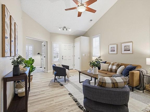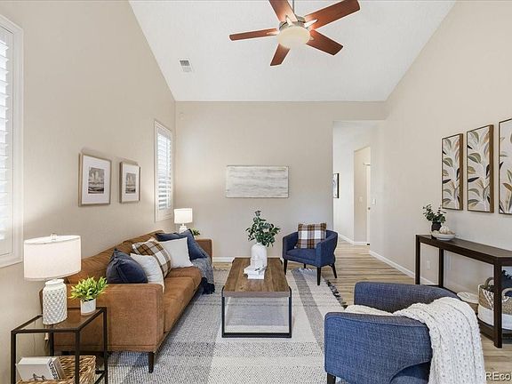Welcome home to this beautifully updated ranch in the highly sought after Eastridge neighborhood of Highlands Ranch. This move-in ready residence shines with brand new flooring, fresh paint, updated trim, modern fixtures, and new toilets—every detail has been thoughtfully refreshed so you can settle right in. Offering flexible living with three bedrooms or two bedrooms plus a dedicated office, the home sits on a spacious, fully fenced lot that backs to a peaceful greenbelt and the Grand View Trail—part of Highlands Ranch's extensive trail system. The primary suite features vaulted ceilings, a generous walk-in closet, and a full ensuite bath complete with a large soaking tub. A second bedroom sits conveniently next door, while the third bedroom—styled with French doors and its own walk-in closet—rests at the front of the home, ideal for an office or guest space. Enjoy a light and bright eat-in kitchen, an additional full bath, a dedicated laundry room, and plantation shutters throughout. Perfectly situated just blocks from Arrowwood Elementary, the home also offers easy access to Highlands Ranch High School, Rock Canyon High School, Valor Christian High School, Big Dry Creek Park, Highland Heritage Regional Park, and Paintbrush Park as well as the spectacular Highlands Ranch Rec Centers. This affordable home combines exceptional updates, a functional layout, and an unbeatable location—truly a rare find in Eastridge.
