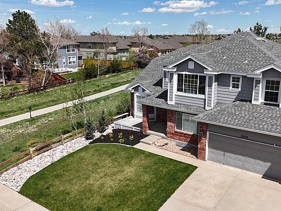 Gorgeous home on a spacious lot that's truly a rare find, this 6 bed/5 bath Highlands Ranch home checks every box. With a coveted open concept, this home’s dream kitchen is a chef’s delight featuring a huge island that seats 6, granite countertops, high-end cabinets with loads of pantry space, gas cooktop with pot filler and range hood, beautiful stainless appliances including 2 dishwashers, trash compactor, 2 copper sinks, and more. The kitchen and family room opens to an incredible, professionally landscaped outdoor space with a paver patio, built-in grill, stone firepit, outdoor lighting - providing the perfect backdrop for true Colorado indoor/outdoor living. The inviting main level also includes a 2-story living room, dining room, double glass door office, huge mudroom with built-in storage, and a ¾ bath. Plantation shutters throughout with huge windows inviting natural light in. Upstairs you'll find a large primary suite and 5 pc bathroom with dual vanities, glass shower, and 2 walk-in closets. Three additional bedrooms, two full bathrooms and a laundry room complete the upper level. The finished lower level is perfect for entertaining and includes a recreation room with built-in wet bar featuring granite counters, fridge and wine storage. Two additional bedrooms and a ¾ bath make this a perfect home for guests. All new furnace, AC & hot water heater in 2022. Whole house humidifier 2023, whole house fan 2024, full front landscape refresh 2023, French drain system in 2021. Storage system in garage as well as a new garage door motor. This home sides to Grand View Trail where you can walk to Redstone Elementary, Highland Heritage, and Dry Creek Parks. Desirable Douglas County schools and highly sought-after Rock Canyon High School. There are four fantastic rec centers nearby, with indoor and outdoor pools, great workout facilities, and dozens of activities. This bright and happy house has it all providing ample breathing and growing space for families.