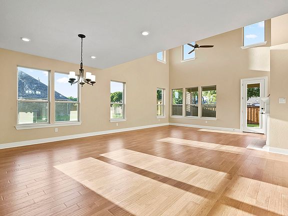 This grand home features a stone and brick front, along with a three-sides brick exterior. Inside you'll find a cozy fireplace at the great room, and a spacious study. The modern kitchen boasts 42-in. beech upper cabinets, upgraded Silestone® countertops and tile backsplash, and stainless steel appliances, including a combination microwave/wall oven, gas cooktop and refrigerator. The master bath impresses with a separate tub and shower, and a dual vanity. Bath 2 and bath 3 each include an upgraded dual vanity, and a combination tub/shower. Find beautiful upgraded hardwood flooring in the dining room, living room and kitchen, with plush carpeting in the study, loft and all bedrooms. Outside, enjoy a spacious covered patio.