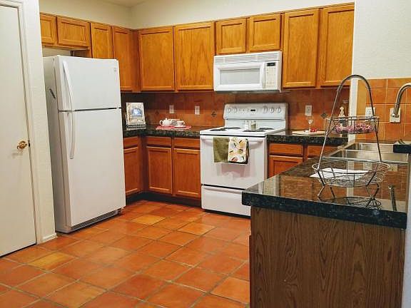 Great home back on the market due to buyer's loan falling through. If you are looking for a home in Rita Ranch but still want a sizable yard, then this home is for you! Beautiful, clean 4 bedroom (or 3 with a den) home with a HUGE yard and private enclosed pool. New double sink and faucet, granite counter tops and tile backsplash in kitchen. Energy efficient washer/dryer, refrigerator and stove are all approx 2 years old and rarely used. (home was never fully occupied-rented short term to family friend). new ceiling fans and light fixtures throughout. Saltillo tile in main living areas and den-carpet in bedrooms. In addition to the pool, the back yard has an enclosed dog run and several trees, including a fruit bearing lemon tree. Come take a look, you won't be disappointed!