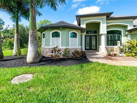 Your Grand Florida oasis awaits on this oversized, quadruple lot, almost a full acre in size, in the quiet & pristine community of South Gulf Cove. Stunning Newer construction custom home was carefully crafted, tastefully upgraded. You'll fall in love from the moment you drive up the oversized paver patio driveway in front of the 4 car garage, a place for all your Florida toys. Walk past the royal palms as you Step through the double entry glass front doors into the foyer and gaze across the Great Room to sparkling pool views and open land beyond. Let the outdoors in by opening the disappearing corner sliding doors..which creates an amazing spacious feeling. The welcoming Great Room features decorative coffered ceilings and hosts a study/den/workout room off to the side with transom windows for beautiful natural lighting. Notice the diamond pattern tile and plantation shutters that carry throughout the home. The chef inspired kitchen will be a dream to cook and host in. Dual built-in ovens, cooktop, large cooking island & breakfast bar, tasteful tile back splash and 42" tall upper wood cabinets with crown molding for plenty of storage. Extra wall of cabinets for your coffee or wine bar. The well designed outdoor areas include brick pavers and and an outdoor kitchen which allows for an extended living footprint of this home for large families and guests. Relax in the privacy of your master suite to enjoy soaking in the beautiful tub, or enjoying the walk through shower. Your guests will also enjoy the privacy of the split floor plan and roomy guest bedrooms with a third bath that doubles as a pool bath. There is a jack and jill bath as well between two of the bedrooms for privacy and ease of family sharing. The Man cave garage has a mini split air system and commercial epoxy flooring, ready for whatever he enjoys or collects. Enjoy relaxing days floating in the pool with a perfect view for nightly sunsets. Allow your pets or guests to wonder around the oversized backyard. Enjoy fruit trees already producing, mango, keylime, avocado, Orange and lemon. When you're not lavishing in the privacy of your own home or enjoying the breezes while laying in the hammock on your large estate property, put the boat in from the ramp right down the road at South Gulf Cove Park or walk the kids or grandkids down for playing on the playground there, ride bikes across the Cape Haze Pioneer Trail, spend an afternoon shopping downtown Boca Grande or soak in the salt waters of the Gulf of Mexico.