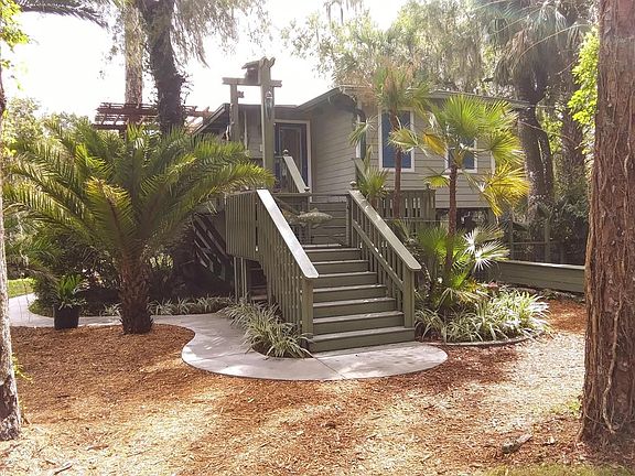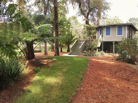Park like setting on the Rainbow River and 1.5 acres. Boat house studio apartment has person elevator. Garage near front entrance and carport sits down the winding drive by the residences. 32 ton capacity concrete bridge over mining shaft. Patio stone court yard with fire pit. Screened porch over looks court yard and out to river. All structures have electric and property can be lit from top to bottom. Large dock with davits, gazebo, covered areas and sitting deck. Citrus trees and grape vines add to the charm All buildings have separate electric meter. Sprinkler system runs around entire property.