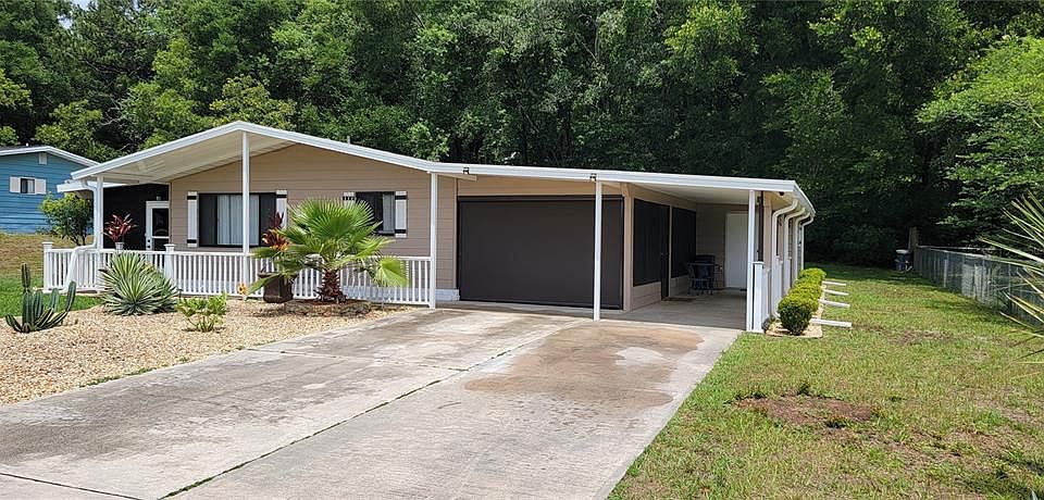 Welcome to your new home in the vibrant community of Ocala, Florida! Nestled in the heart of a serene fifty-five plus community, 10079 SW 87th Terrace offers a perfect blend of comfort, convenience, and resort-style living. This charming property boasts a newer roof (2023), a cozy yet spacious layout featuring 2 bedrooms and 1.5 bathrooms, providing ample space for relaxation and entertaining. The enclosed carport/garage accommodates one car, Includes a Somfy electric sun shade screen garage door. While the additional carport ensures plenty of parking for residents and guests. Step inside and discover a thoughtfully updated interior, complete with modern appliances and stylish finishes. The kitchen and bathrooms feature elegant ceramic flooring, offering both durability and aesthetic appeal. Soft carpeting in the bedrooms creates a cozy atmosphere, while laminate/vinyl flooring in the hall and living room provides easy maintenance and timeless charm. Indulge in outdoor living at its finest with a screened enclosed air conditioned lanai overlooking the beautifully landscaped yard, perfect for enjoying the Florida sunshine in privacy and comfort. Sit back and have a fresh orange, from your very own Orange tree. Residents of this community enjoy access to a wealth of amenities, including two clubhouses, two sparkling pools, and a relaxing hot tub. Stay active and social with pickle ball courts, tennis courts, and basketball courts, or participate in a variety of entertainment and community clubs. At 10079 SW 87th Terrace, you'll experience the best of both worlds - a peaceful retreat surrounded by nature, yet close to shopping, dining, and entertainment options. Don't miss your chance to make this exceptional property your new home sweet home. Welcome to the lifestyle you deserve! (Note: The description complies with HUD and Fair Housing Guidelines by focusing on the property features and amenities available to all residents.)