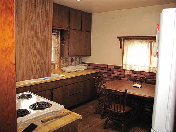 This 2 bedroom home is in need of someone to make it their own and add their personal touches. The home boasts a large fenced in back yard with apple and pear trees and lovely raspberry bushes. There is plenty of room to have your own garden as well. Have a lot of toys? With the large garage and lean to area off the back of the garage, there is ample room for storing your toys.