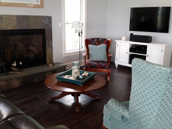 Post Sande 100% new structure. On piles 11 ft up. 4 bedroom with 5th den/bedroom. spacious open first floor - kitchen/dining room/family room flow together. On Barnegat Bay, facing due west, water to S, W & N. 50 ft dock. balcony on 3rd fl, also to west, greatviews. 3 zone heat and AC. dumbwaiter from grade up to first floor, don't have to carry groceries up. 30 ft covered porch on bay side-facing west. Architectural style: Jersey shore 1920's traditional.