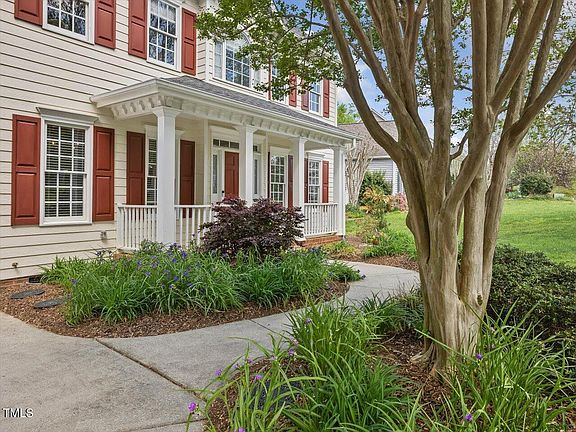 Stunning 3 Bedroom + Bonus, 2.5 Bath Home with 2-Car Garage and Walk-Up Attic! This bright and spacious home boasts 2,212 sq. ft. of living space, featuring an oversized 482 sq. ft. walk-up attic for extra storage or potential expansion. A charming rocking chair front porch welcomes you to this beautifully updated property, complete with fresh paint (2021) and LVP floors (2021) on the main level. Enjoy elegant touches like smooth ceilings, blinds throughout, a Formal Dining Room with tray ceiling, crown molding, and wainscoting. The Family Room is perfect for relaxing with a fireplace, ceiling fan, chair rail, and crown molding. The updated kitchen is a chef's dream with stainless steel appliances, including a Bosch dishwasher, new Refrigerator (2022), granite counters, new cabinets, tile backsplash, island, and pantry. The spacious Primary Bedroom features two walk-in closets, and the Primary Bath offers a garden tub, double sinks, walk-in shower, and vaulted ceiling. Upstairs was freshly painted in 2024. The exterior has durable fiber cement siding (painted 2021), and both new air conditioners (2022/2023), new ductwork (2021), and a new gas water heater (2021) ensure comfort and efficiency. The home sits on a large, private, flat lot with a fully fenced backyard and a huge deck (refinished in 2023) perfect for entertaining. Just minutes from downtown Apex, top-ranked schools, Jordan Lake, and I-540. Additional updates include new toilets, some replaced windows, and a new roof (2013). Whole house termite treatment completed in 2021. This home is a must-see!