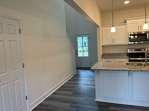 This is a brand new home with all the upgrades! This home has wood floors, fire place, granite countertops, custom cabinets, celling fans, stainless stove, microwave, dishwasher and refrigerator. The primary bathroom has double sinks and a large tub with a separate shower. There is a concrete driveway and patio. The home has an attached 2 car garage. This community has a swimming pool, club house and tennis courts. Tenant is responsible for utilities and lawn care. 12 month lease. No smoking allowed.