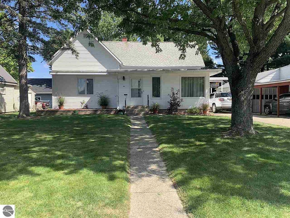 Renovated Gem in the City of Clare. Great location, close to shopping and walking distance to Downtown or the Athletic Complex. Beautiful Oak wood flooring in the expansive living room, dining area. Kitchen was renovated with new appliances, flooring, an island with sitting area, numerous cabinets, solid surface countertops. Kitchen appliances included with the sale. 3 bedrooms on the main floor, 1 bedroom upstairs. Nearly full basement, storage galore, great access to mechanicals. Finished portion includes a family room, with another unfinished storage/exercise room. Park like setting in the expansive back yard, thoughtful landscaping, storage shed. Concrete driveway and walkway to the front door.