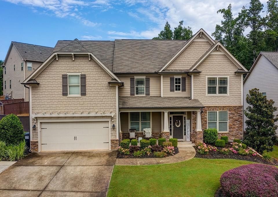 This is a rare opportunity to own the former model home in Hampton Station, one of Cherokee County's most sought-after communities. This fabulously appointed home offers high-end finishes throughout, with an exquisite, oversized master, a guest bedroom on the main floor, and soaring ceilings in the open concept family room. The fully fenced backyard offers a fire pit and plenty of room for playing or gardening. In close proximity to grocery and shopping and less than 20 minutes from downtown Canton, Hampton Station is a beautiful neighborhood complete with a pool, fitness center, tennis courts, and more. Capitalize on the chance to own one of this wonderful community's premier homes.