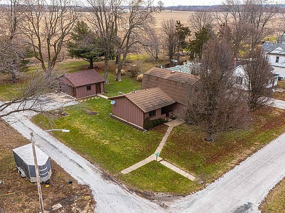 Fascinating smartly priced small town Logan County 3 bedroom, 1.5 two story wood sided barn-like home situated on a generous 75X152 corner lot with NO rear neighbors -- A RARE FIND! This home has been impeccably maintained by the current owner for the past 38 years -- totally move in ready! Step inside and prepare to feel right at home in the welcoming 16X19 living room host to a large front facing bay window, charming built-in desk area, and a beautiful center fireplace (electric insert installed in 2023). Main floor also features a tastefully updated equipped kitchen with a breakfast bar area, built-in, ample space for a dining room table and chairs, and a rear facing sliding glass door exterior access point, comfortably sized bedroom with newer carpeting, large full hall bath, and a smartly located laundry/mechanical/mudroom area with an additional rear exterior access point. Upstairs, you will find two additional large bedrooms measuring 14X13 and 12X13 -- both bedrooms feature large closets -- front bedroom boasts an adjacent half bath. Property also features a covered front porch, large rear deck, oversized 2010 constructed 2+ car detached garage, metal roof on house (2013), York furnace and central air conditioning unit (2013), updated water heater (2017), Generac generator (2017), and a deep lit encapsulated crawlspace. Private well/septic system on premises. The best of small town living awaits you and yours in the Logan County village of Cornland -- ACT QUICKLY!
