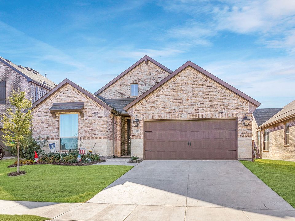 Popular one-story floor plan built by American Legend Homes, less than 1 year old with 4 bedrooms, 3 full baths, dining area, media room or an office and 2-car garage located on a North facing lot. Home features extensive hard wood flooring throughout, extended main bathroom has large shower complete with linen closet, bay window at main bedroom plus high ceilings in foyer and family room complete with a cozy fireplace. Plenty of beautiful upgrades like exterior stone elevation, quartz counters, gorgeous wood floor and extended outdoor living! 4th Bedroom ensuite bath perfect for guests or parents. Located in the resort style Master Planned community of Light Farms, home to endless amenities, miles of hiking and biking trails, concerts and family themed nights, walking distance to the on-site Elementary school zoned to highly regarded Prosper ISD.