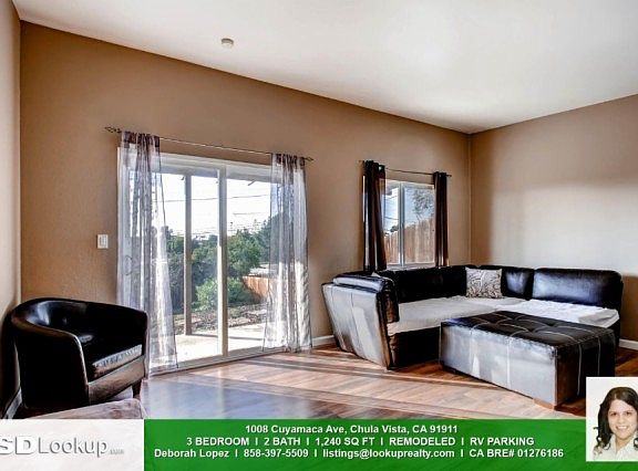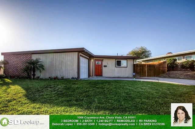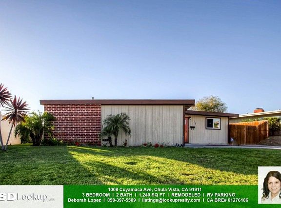 This 1240 square foot single family home has 3 bedrooms and 2.0 bathrooms. This home is located at 1008 Cuyamaca Ave, Chula Vista, CA 91911.