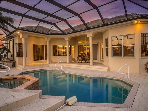 ONE OF THE BEST WATERFRONTS IN CAPE CORAL! Located within walking distance to the Beach and Yacht Club Pavilion. Enjoy stunning Southwestern views over the River! This home offers a great floor plan and water views from all the main living areas as well as the Master Suite. Heated pool with LED colored lights and built in spa, pool bath, surround sound speakers throughout the home, brand new tile roof, new screens in lanai, fireplace, 10,000 lb lift. Come take a look at this home to appreciate the views and fantastic location.