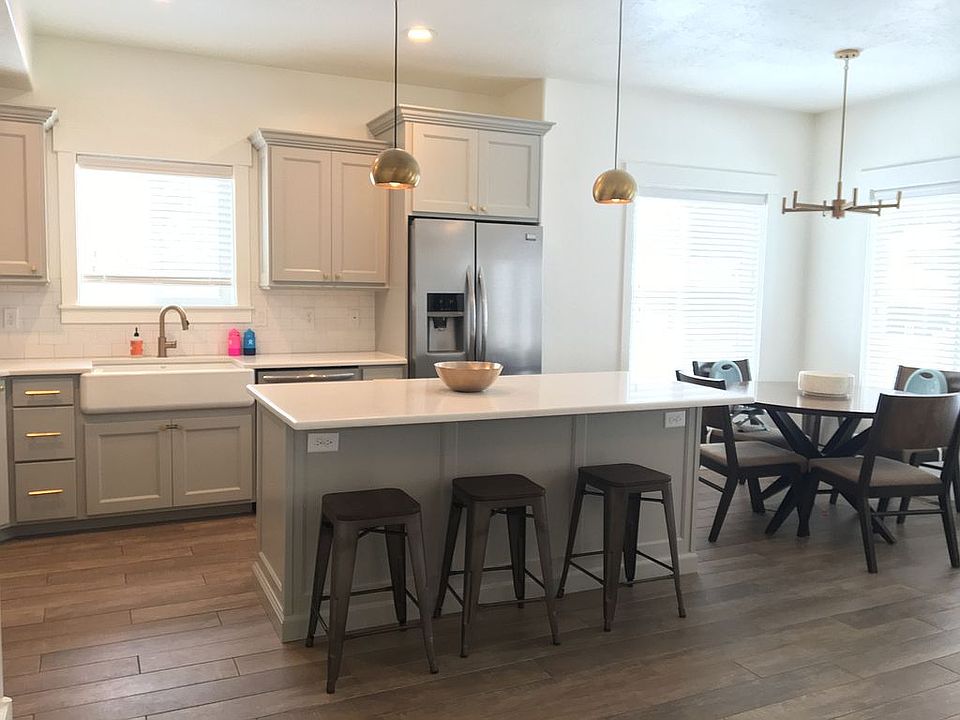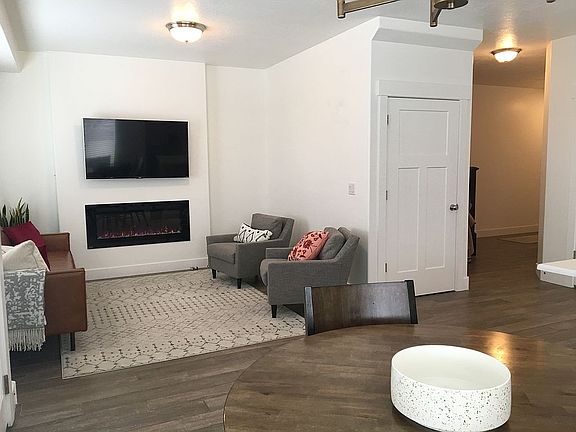 Beautiful townhome In a perfect very quite location. Less than 5 minutes to I-15 yet isolated amd completely disconnected from any traffic or noise. This home was built in 2017 by a custom builder from alpine and is far above cookie cutter quality. The sink and backsplash complement the white quartz and custom hardwood style tile. All bathrooms feature white quartz, hardwood tile and customs cabinets to match the style of the kitchen. Upstairs master bathroom has two sinks with shower and separate bathtub with a generous walk in closet. The upstairs guest bath has a sink, bathtub-shower combo. Each of the three bedrooms have ceiling fans. The basement also has a full bathroom with bathtub/shower and quartz/hardwood tile to match the rest of the home. The owner brought in the hardwood tile, farmhouse sink, electric fireplace and all light fixtures from West Elm and other high end suppliers totaling 15k of custom upgrades, not including the fully finished basement or professional appliances. The basement is perfect for children’s play area, exercise room or just for family entertainment. The entire home has smurf tube and can lighting keeping things clean and sharp. There is plenty of storage downstairs and in the two car garage. Enjoy the beautiful views of the mountains and garden from the master balcony, kitchen sink and from the side yard. Side yard next to the home is yours being that it is at the end of the development and secluded. HOA takes care of all the maintenance making for truly hassle free living. Appliances: dishwasher - Professional KitchenAid refrigerator/freezer, gas range/convection oven and professional microwave appliances offered as an option. You will love the care free townhome lifestyle in a highly coveted area - this opportunity will not last long! BEST AND FINAL OFFERS DUE SUNDAY AUG 1 at 6 PM Owner is an agent