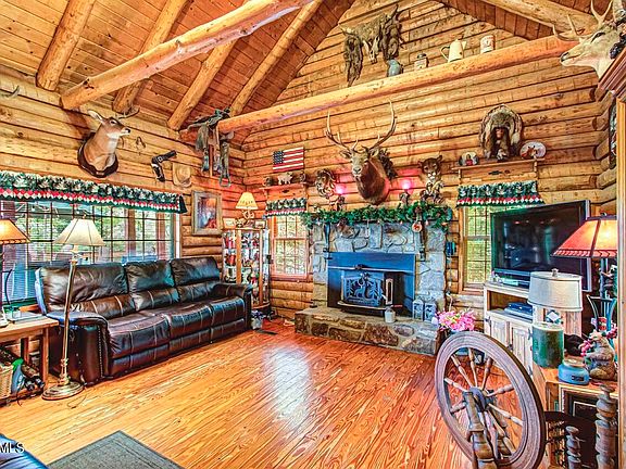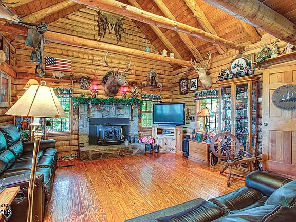 Log cabin with an Awesome Mountain View located in Gatlinburg and is only minutes from downtown. Sit out on the expansive front deck and take in the view. On the main level you walk into the great room with a stone wood burning fireplace. Off of the great room is the kitchen and dining area. On this level is a full bathroom and an extra room. Go up to the loft area and there is the 2 bedrooms. Basement is unfinished, but has a full bathroom, laundry hook-ups, and wood burning fp. This area could be turned into a rec room or extra sleeping area once finished. The back deck leads to the fenced in nice sized yard and a storage building. This cabin would make an awesome rental with some touch ups. Great location and this cabin is not in the HOA, so no HOA fees. Come check it out and see that view for yourself!