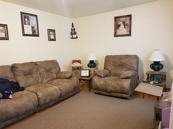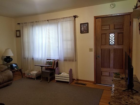 What a Cutie! brick with 3 beds, 1 bath, living room, den, large eat-in kitchen. Hardwood in livingroom. Detached garage, storage building and detached carport with paved driveway. large yard for the kids to play. Extra large lot located next to house comes with it as well. You can sell it and make some money off from it or just keep extra lot to prevent a home being beside you. House has been well taken care of. Newer roof & HVAC . Great home for the price!