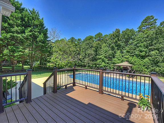 Experience outdoor living at its finest! Almost half acre lot backing up to trees with gorgeous salt water pool, stacked stone fireplace with gazebo and two Trex decks. Inside, rare opportunity to have a primary bedroom on the main plus a secondary bedroom/office. Upstairs 2 additional bedrooms plus large bonus room/5th bedroom. Brand new Luxury Vinyl Plank flooring throughout downstairs. Open kitchen to vaulted ceiling family room. Kitchen features breakfast bar, granite countertops, electric cooktop w/ build-in oven and microwave, breakfast area with great views of the pool. Updated primary bath with large walk-in closet. Great storage throughout.. all upstairs bedrooms have large walk-in closets, plus there is a floored walk-in attic. Brand new pool liner and sand filter. Pool pump motor and salt generator replaced several years ago. Wireless controlled irrigation. Pool equipment, outdoor furniture, fireplace wood, central vac and garage shelving to remain. Welcome Home!
